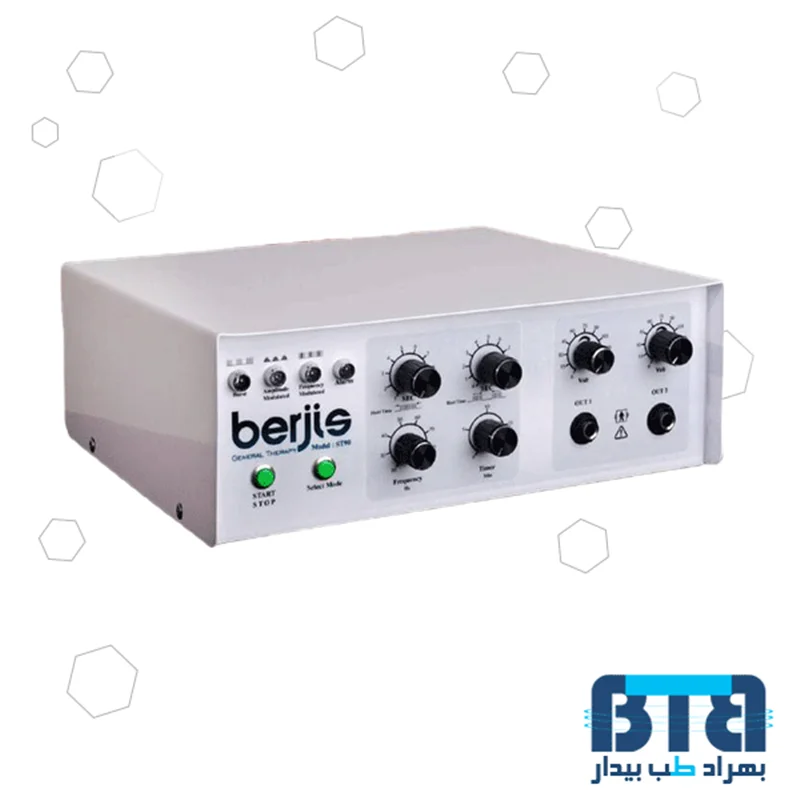 جلوگیری از اتروفی ناشی از عدم تحرک (کم شدن اندازه و حجم بافتهای عضلانی)گرفتگی عضلات افزایش گرش خون موضعی کم کردن عوارض ناشی از ضایعه مغزی و نخاعی باز آموزی حرکات عضلاتکاهش ادم بعد از جراحی ( تورم لنفاوی )کم کردن یا از بین بردن درد های مزمن و حاد که علت آن مشخص شده باشدبدون اثرات گرمایشیحداکثر دامنه معکوس خروجی 4 ولت (به صورت یک دوره زمانی در مدت کمتر از 500 میکرو ثانیه) میزان ولتاژ خروجی 0 تا 150ولت (حداکثر)میزان جریان خروجی 0 تا 80 میلی آمپر در مقاومت 1000 اهم مقدار خروجی 0 تا 150 ولت ( در حالت بی باری)مقدار فیوز : 0/1 آمپرفرکانس پالس :20 تا 90 پالس در ثانیه زمان وصل تحریک : 1 تا 10 ثانیه زمان قطع تحریک : 0 تا 10 ثانیه قابل استفاده با برق شهری 220 ولت( 20 میکرو ثانیه در بازه فرکانسی 20 تا 90 هرتز )حداکثر اختلاف در مقادیر ذکر شده 10%پهنای پالس ها اندکی با آمپدانس بدن تغییر خواهد داشت Amplitude = تولید فرکانس سینوسی و مواج