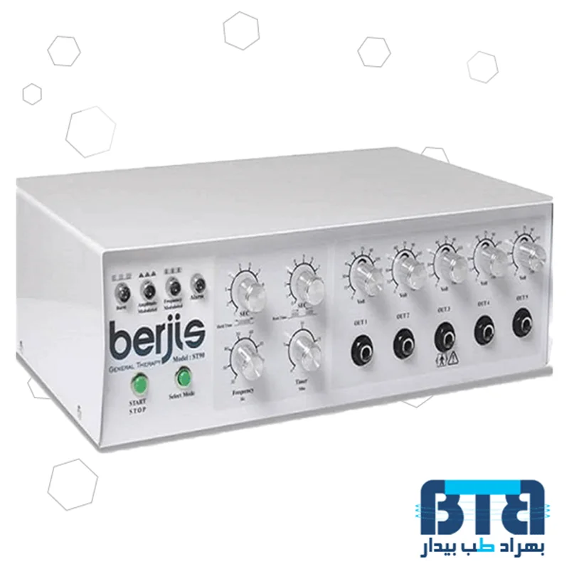 دستگاه فیزیوتراپی قابل حمل پنج کاناله دارای برنامه Faradic ، Tens قابلیت تنظیم زمان Hold از 1 ثانیه تا 10 ثانیه قابلیت تنظیم زمان Rest از 0 ثانیه تا 10 ثانیه قابلیت ایجاد جریان IDC قابلیت تنظیم فرکانس و پهنای پالس سیگنال خروجی قابلیت تولید سیگنالهای قابل تنظیمقابل حمل و کارکرد آسان با پنج کانال همزمان Tens ، Faradic قابلیت تولید 3 نوع شکل موج کاربردی 1 – Burst 2- مدلاسیون دامنه 3- مدلاسیون فرکانس دارای سیستم هشدار پایان درماندارای سیستم Filtering جهت حفاظت در برابر نوسانات برق شهری مزایا و آپشنهای کاربردی دستگاه پنج کانال ST90 قویتر بودن ولتاژ خروجی نسبت به مدلهای قبلی تا 40٪ پنج کانال مستقل با خروجی یکسان بدون افت فرکانس در زمان استفاده از تمام کانال ها قابلیت تنظیم زمان قطع و وصل جریان بصورت مجزا ( hold time / rest time )از صفر تا 10 ثانیه (2وجهی)این امکان بصورت تک وجهی قابل تنظیم قابلیت تنظیم پهنای پالس سیگنال دارای تائیدیه از اداره کل تجهیزات پزشکی دارای مدرک ایمنی الکتریکی دارای مدرک تخصصی دستگاه های الکتروتراپی